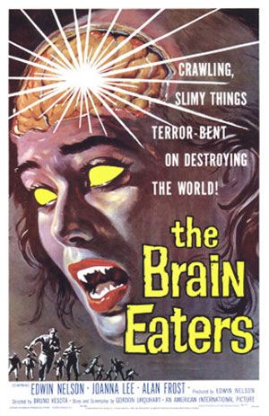 We love B-Movies. Usually. Even the ones like White Zombie from the Golden Age of the B Movie, the ones that came before the big transition in the 1950s. And who doesn't enjoy some low quality Seventies Exploitation movies once in a while? It's not just Tarrantino who watches this crap. Then there's all the B-Movie stuff that came out around the Eighties and of course the devolution of the form into the dreaded Z-movie. But we already slipped-in a link for the remake of Plan 9 From Outer Space last time, so we'll just skip ahead to B Movies again. Gotta stay on track. We're on a schedule. There's a ton of B-Movie goodness (and badness) over at B-Movie Central. Sometimes they just make our heads hurt. Like these wonderful specimens of cerebrophagy and other Brain-related weirdness.